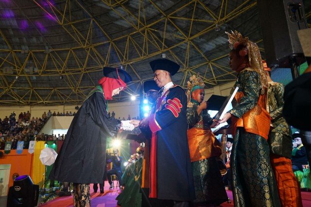 “Jangan sekali-kali menyakiti hati mereka dengan sikap dan lisan kita. Kita semua bisa berhasil adalah karena mereka, orang tua kita. Mari kita berikan penghargaan dan applause kepada mereka semua serta mendoakan semoga mereka senantiasa sehat dan bahagia. Mudah-mudahan anak-anak kita yang diwisuda hari ini akan sukses dalam mendapatkan pekerjaan dan mencapai cita-citanya di tengah-tengah masyarakat, bangsa dan negara,” pungkasnya.