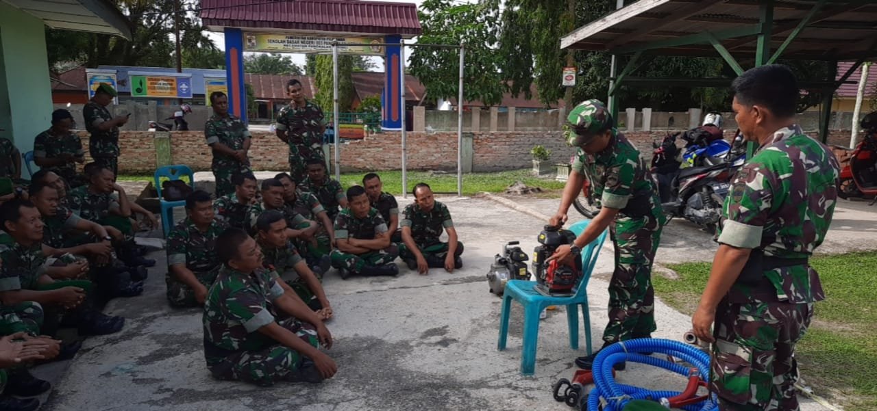 Pelalawan (Nadariau.com) – Babinsa Koramil 15/Kuala Kampar Kodim 0313/Kpr yang bertugas di tiga kecamatan yakni Kuala Kampar, Teluk Meranti dan Kerumutan dalam rangka mendukung penanggulangan bencana asap karhutla melakukan Bimbingan Teknis tentang pengoperasian dan perawatan mesin pemadam kebakaran jenis Mini Strike secara terpusat di Kerumutan Kabupaten Pelalawan – Riau, Senin (03/02/2020).