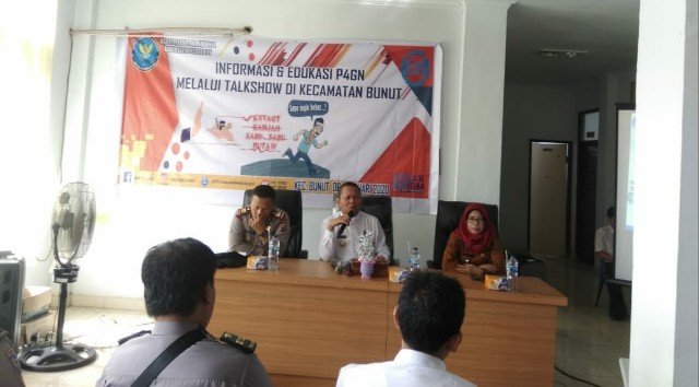 Pelalawan (Nadariau.com) – Camat Bunut Srinursari, menghadiri talk show program P4GN (Pencegahan Pemberantasan Penyalagunaan dan Peredaran Gelap Narkoba) yang dilaksanakan oleh BNN Kabupaten Pelalawan pada di kantor Camat Bunut.