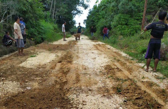 Melihat kondisi jalan yang banyak berlobang ia berinisiatif untuk mengadakan Gotong Royong bersama Masyarakat Desa Polak Pisang.