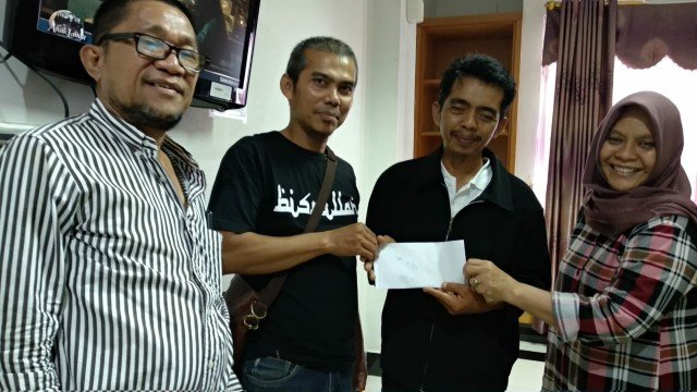 Hadir perwakilan dari JMSI Riau saat memberikan bantuan, Plt Sekretaris Bambang Irawan Syahputra, Plt Wakil Ketua Luzi Diananda, Ketua Panitia Kongres Yanto Budiman Situmeang, Zulpen dan Rima Ridarni.