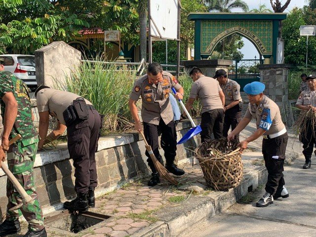 Pekanbaru (Nadariau.com) – Kapolresta Pekanbaru Kombes Pol Nandang Mu’min Wijaya SIK, MH, ikut menyapu sampah di jalan bersama anggotanya. Kegiatan dalam rangka bersih-bersih ditempat umum yang berada diwilayah hukum Polresta Pekanbaru, Sabtu pagi (14/3/2020).