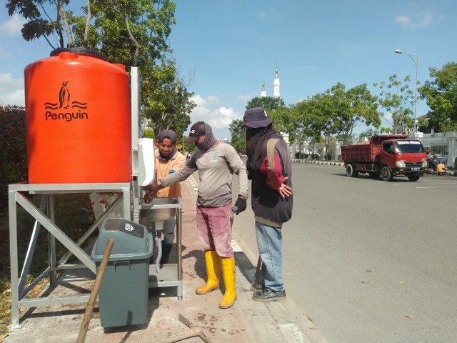 Salah satu bentuk upaya yang dilakukan Pemko yakni dengan memasang wastafel portable atau tempat cuci tangan disejumlah lokasi strategis di Kota Batam.