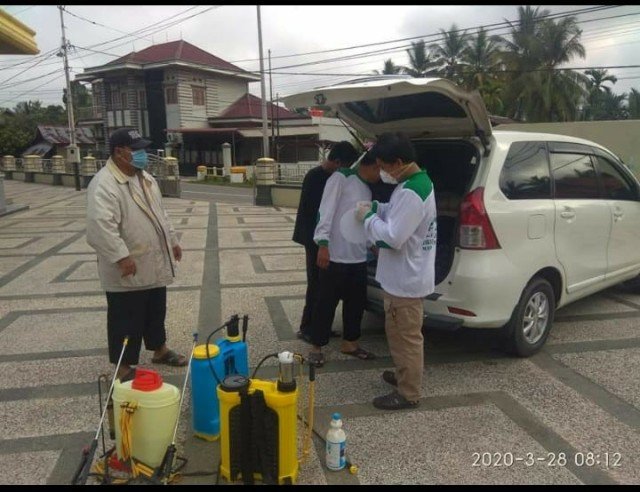 Kuansing (Nadariau.com) – Tidak ingin ketinggalan dalam mencegah sebaran virus Corona atau Covid – 19, Fron Pembela Islam atau FPI Kuansing, Minggu melakukan pembersihan dan penyemprotan sejumlah mesjid menggunakan desinfektan.
