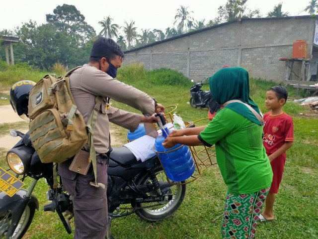 Berjuang untuk Rakyat, Seorang Polisi di Inhu Keliling Kampung Cuci Tangan Warga