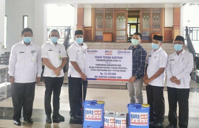 “Kami atas nama pemerintah kabupaten Siak mengucapkan terimakasih kepada Bank BRi Siak, yang peduli dengan kondisi merebaknya wabah Corona ini,” kata Bupati Alfedri.