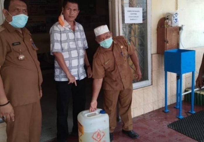 “Setiap desa/kelurahan kita berikan cairan disinfektan sebanyak 35 liter, sebab 1 liter cairan disinsfektan itu dapat digunakan dengan campuran sebanyak 200 liter air,” jelas Hendri.