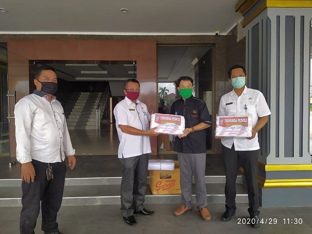 Penyerahan masker langsung diberikan oleh Ketua Harian PSMTI Inhu Surianto di Halaman kantor Bupati Inhu, yang diterima langsung oleh wakil Ketua Gugus Tugas Percepatan Penanganan Covid 19, Ergusfian.