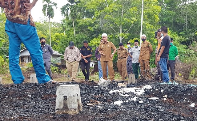 Ia pun berkesempatan meninjau rumah keluarga Ropina warga Dusun 01, RT 02/RW 02, Desa Bungur Kecamatan Rangsang Pesisir yang rumahnya usai terbakar hingga rata dengan tanah pada 26 April 2020 lalu.