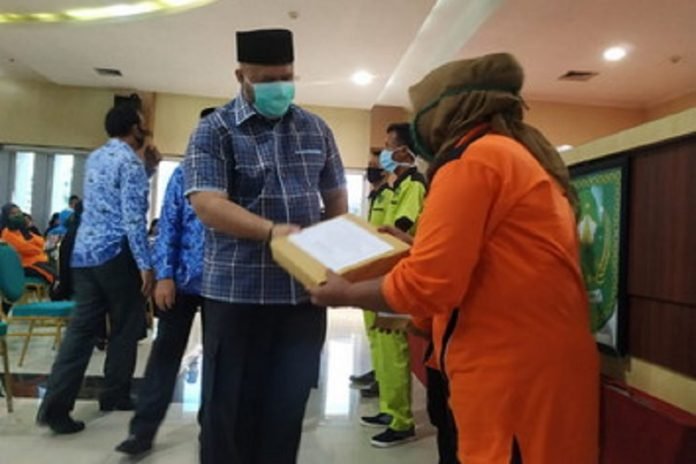 Pada tahun ini, Yopi kembali mengumpulkan para petugas kebersihan di auditorium Yopi Arianto, lantai empat kantor Bupati Inhu dengan menerapkan protokol pencegahan Covid-19.