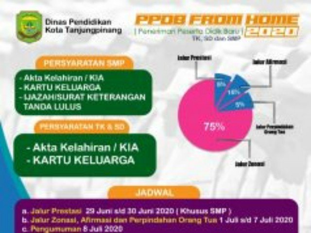 Tanjungpinang (Nadariau.com) – Dinas Pendidikan Kota Tanjungpinang telah mengumumkan jadwal Penerimaan Peserta Didik Baru (PPDB) tahun pelajaran 2020/2021 bagi siswa-siswi jenjang TK, SD, SMP.