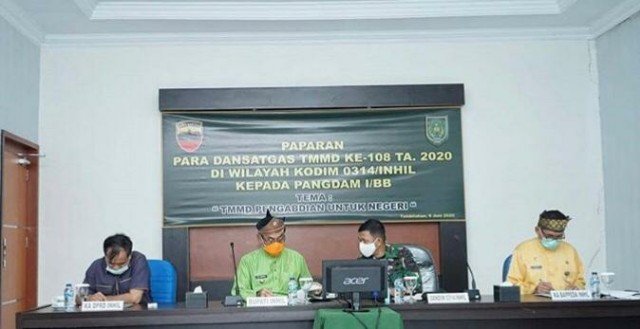Inhil (Nadariau.com) – Bupati Indragiri Hilir (Inhil), Drs HM Wardan MP menghadiri Video Conference (Vidcon) tentang Rakornis TMMD Ke-108 dan TMMD Imbangan TA 2020 di Kodim 0314/ Inhil, Selasa (9/6/2020).