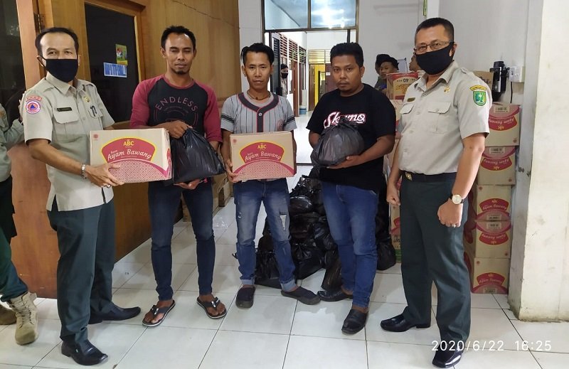 Bantuan sembako langsung diberikan oleh wakil Sekretaris Gugus Tugas Percepatan Penanganan Covid-19 dan juga Kepala KPBD Inhu Erguspian.