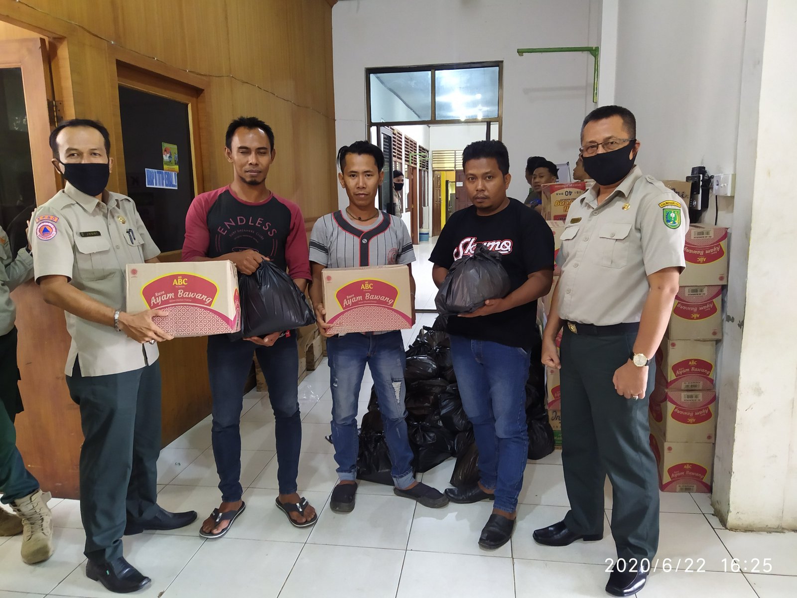 Bantuan sembako langsung diberikan oleh wakil Sekretaris Gugus Tugas Percepatan Penanganan Covid-19 dan juga Kepala KPBD Inhu Erguspian.