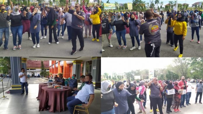 Kegiatan pagi itu, diawali dengan jalan santai mengelilingi komplek perkantoran Bupati Inhu, dilanjutkan dengan senam pagi bersama di halaman kantor Bupati.