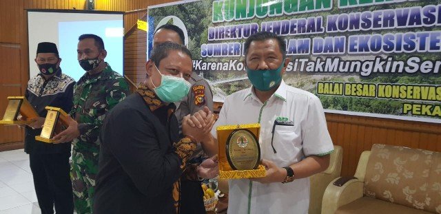Penyerahan penghargaan diberikan langsung oleh Dirjen Konservasi Sumber Daya Alam Ekosistem (KSDAE) Wiratno, mewakili Menteri LHK di kantor Balai Besar Konservasi Sumber Daya Alam (BBKSDA) Riau, di Kota Pekanbaru.