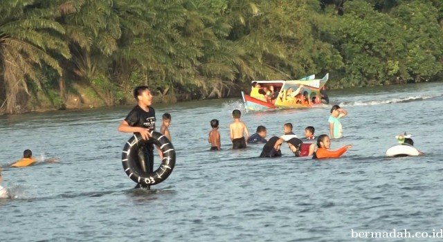 Ada juga perahu boat yang akan mengantarkan pengunjung menikmati deburan ombak sungai Kampar saat perahu boat melaju melawan arus dan keamanan pengunjung dijaga dengan adanya baju pelampung.