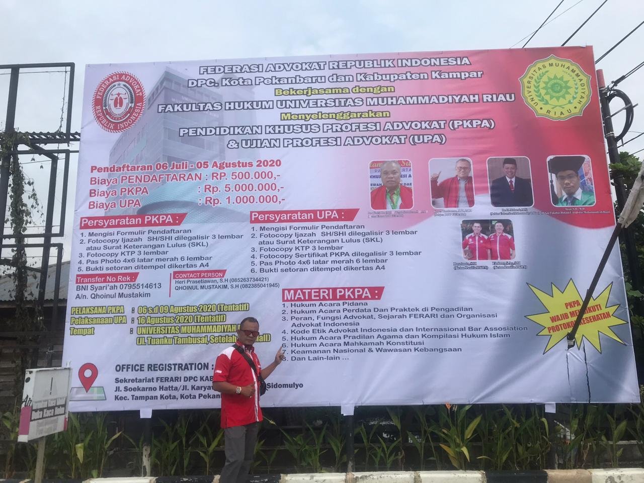 Terkait pelaksanaan ini, DPD FERARI Provinsi Riau melalui Sekretaris Daerah Andriadi, SH melakukan giat monitoring terkait kesiapan pelaksanaan PKPA yang akan diadakan di gedung Rektorat Universitas Muhamadiyah Riau Lantai 6
