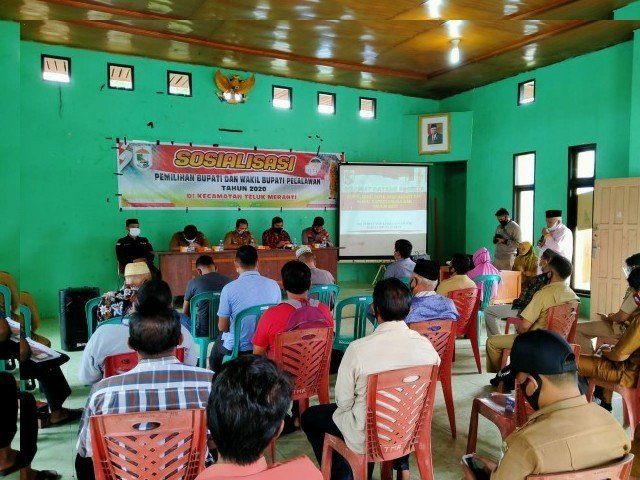 Pekanbaru (Nadariau.com) – Pemerintah Kabupaten (Pemkab) Pelalawan melalui Kesbangpol Kabupaten Pelalawan mensosialisasikan pemilihan Bupati (pilbup) dan Wakil Bupati (Wabup) Pelalawan di Gedung Serba Guna Kantor Camat Teluk Meranti, Selasa (29/09/2020).
