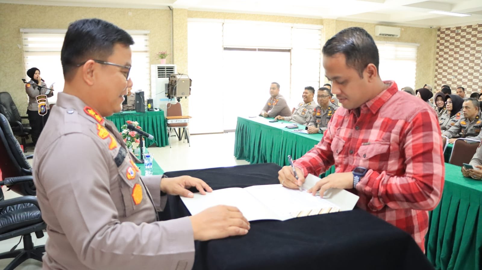 Bertempat Aula Zapin Polresta Pekanbaru, giat tersebut turut dihadiri oleh Pejabat Utama Polresta Pekanbaru serta para Kapolsek jajaran Polresta Pekanbaru.