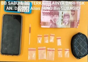 ” Selain itu dari kantong celananya di temukan uang tunai sejumlah Rp 7 ratus ribu rupiah diduga uang hasil penjualan narkotika jenis sabu, 1 unit handpone merk Vivo warna biru, dan 1 unit handpone merk Nokia warna biru,” Kata AKP Juliandi SH.