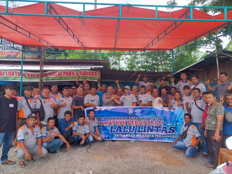 Pekanbaru (Nadariau.com) – Guna menekan angka kecelakaan lalu lintas, Satuan Lalu Lintas Polresta Pekanbaru kembali melaksanakan kampanye keselamatan berlalu lintas, kali ini Satlantas menyambangi basecamp Keluarga Besar Dump Truk (KBDT) Panam di Jalan Garuda Sakti KM.3 Panam Pekanbaru, Kamis (19/01/2022).