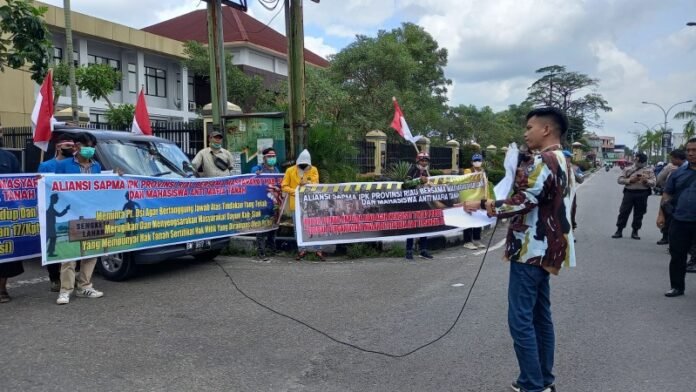 Demo Polda Riau, Mahasiswa Minta Usut Kasus Perampasan Lahan Yang Dilakukan PT DSI