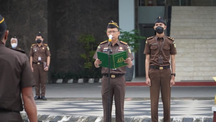 Pekanbaru, Nadariau Com – Koordinator bidang Perdata dan Tata Usaha Negara Kejaksaan Tinggi Riau Djaka Bagus Wibisana, S.E.,S.H selaku penerima Apel Kerja Pagi yang diikuti oleh para Asisten, Koordinator beserta seluruh pegawai Kejaksaan Tinggi Riau, bertempat di halaman Kantor Kejaksaan Tinggi Riau Senin tanggal 30 Januari 2023 sekira pukul 07.30 Wib.