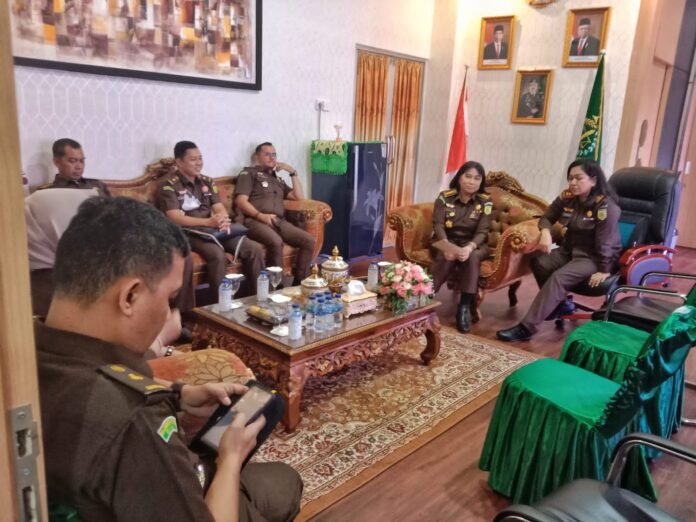 Pekanbaru, Nadariau Com – Asisten Pengawasan Kejaksaan Tinggi Riau Ayu Agung, SH., MH, M.Si (Han) bersama seluruh Pemeriksa dan Auditor bidang Pengawasan Kejaksaan Tinggi Riau melaksanakan Kunjungan Kerja ke Kejaksaan Negeri Rokan Hilir dalam Rangka Inspeksi Umum Tahun 2023, bertempat di Kejaksaan Negeri Rokan Hilir, Pada Senin 30 Januari 2023 sekira pukul 14.10 Wib.