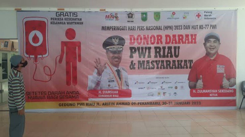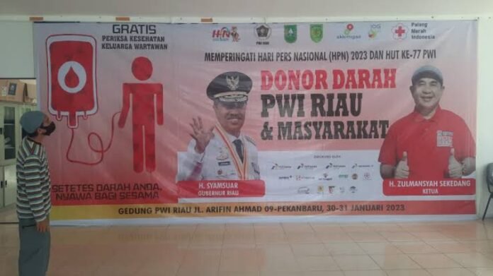 Pekanbaru (Nadariau.com) – Persatuan Wartawan Indonesia (PWI) Provinsi Riau akan mengadakan kegiatan bakti sosial (baksos) donor darah dalam rangkaian kegiatan Hari Pers Nasional (HPN) dan Hari Ulang Tahun (HUT) ke-77 PWI di Kantor PWI Riau Jalan Arifin, Kota Pekanbaru, Senin (30/01/2023) pagi.