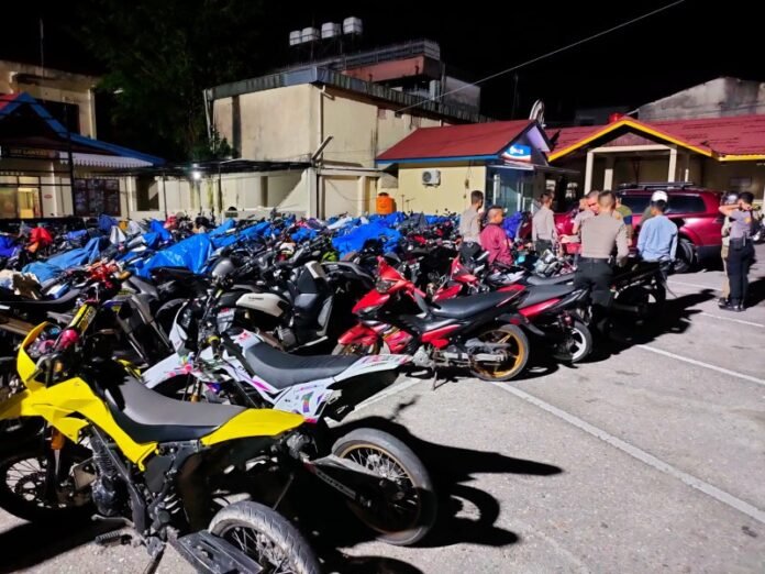 “Saat diamankan para pengendara yang mayoritas usia muda ini tidak bisa memperlihatkan SIM ataupun surat surat kendaraan. Kendaraan yang diamankan juga menggunakan knalpot brong, tidak menggunakan TNKB ataupun kelengkapan lainnya,” kata Gitta.