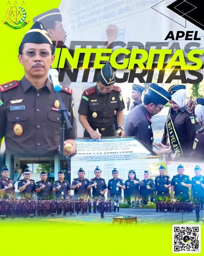 Pekanbaru, Nadariau Com – Kepala Kejaksaan Tinggi Riau Dr. Supardi Pimpin Apel Pencanangan Pembangunan Zona Integritas menuju Wilayah Birokrasi Bersih dan Melayani (WBBM) yang diikuti oleh Wakil Kepala Kejaksaan Tinggi Riau dan Para Asisten beserta seluruh pegawai Kejaksaan Tinggi Riau, pada Selasa 14 Februari 2023 sekira pukul 07.30 Wib.