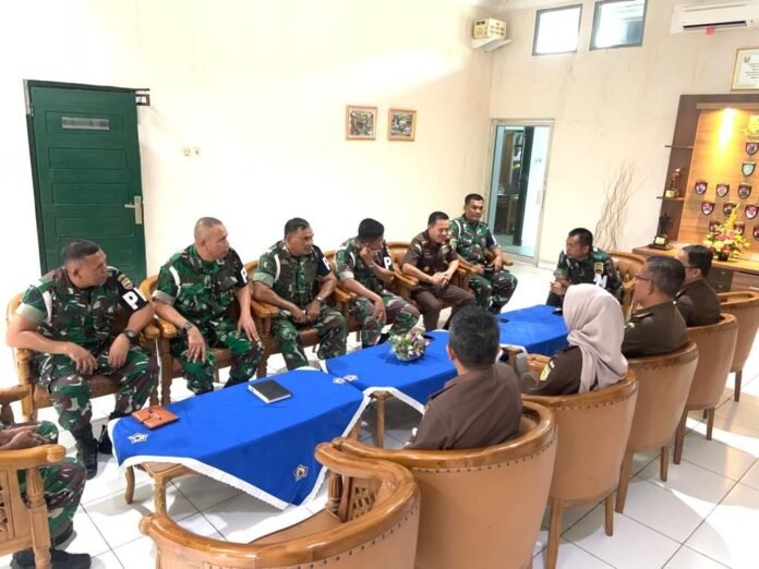 Pekanbaru, Nadariau Com – Asisten Bidang Pidana Militer (Aspidmil) Kolonel Laut (KH) Faisol, SH beserta Kasi Penindakan, Kasi Penuntutan, Kasi Uheksi dan Jaksa Fungsional mengunjungi Detasemen Polisi Militer Angkatan Darat (Denpomad) I/3 Pekanbaru guna melakukan Koordinasi Teknis dan Monitoring terhadap penyelesaian perkara yang berpotensi koneksitas Senin 20 Februari 2023.