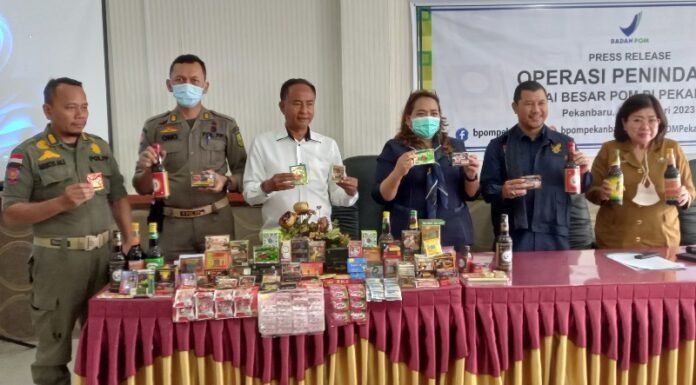 Pekanbaru (Nadariau.com) – Balai Besar Pengawas Obat dan Makanan (BBPOM) Pekanbaru, Selasa (14/02/2023) kemaren, berhasil mengamankan 129 item obat tradisional Tanpa Izin Edar atau Izin Edar Fiktif dan mengandung Bahan Kimia Obat (BKO), sebanyak 11.049 pcs, dengan nilai ekonomi sebesar Rp.412.885.000, disebuah gudang yang berada di wilayah Kecamatan Tanah Putih, Kabupaten Rokan Hilir (Rohil), Riau.