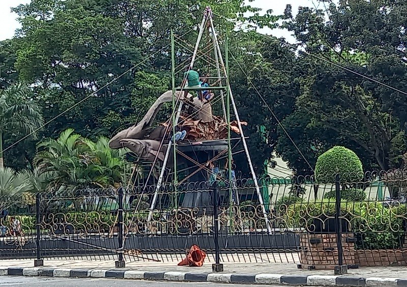 Pekanbaru (Nadariau.com) – Perbaikan Tugu Selais Tiga Sepadan yang ambruk sejak Kamis 23 Februari 2023, memakan waktu lebih kurang satu minggu.