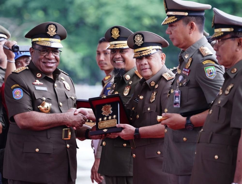 Penghargaan tersebut diserahkan langsung oleh Wakil Menteri Dalam Negeri (Wamendagri) John Wempi Wetipo kepada Wakil Gubernur Riau (Wagubri) dalam acara apel Gelar Pasukan HUT 73 Satpol PP dan ke 61 Satlinmas di Lapangan Karebosi Makassar, Jumat (03/03/2023).