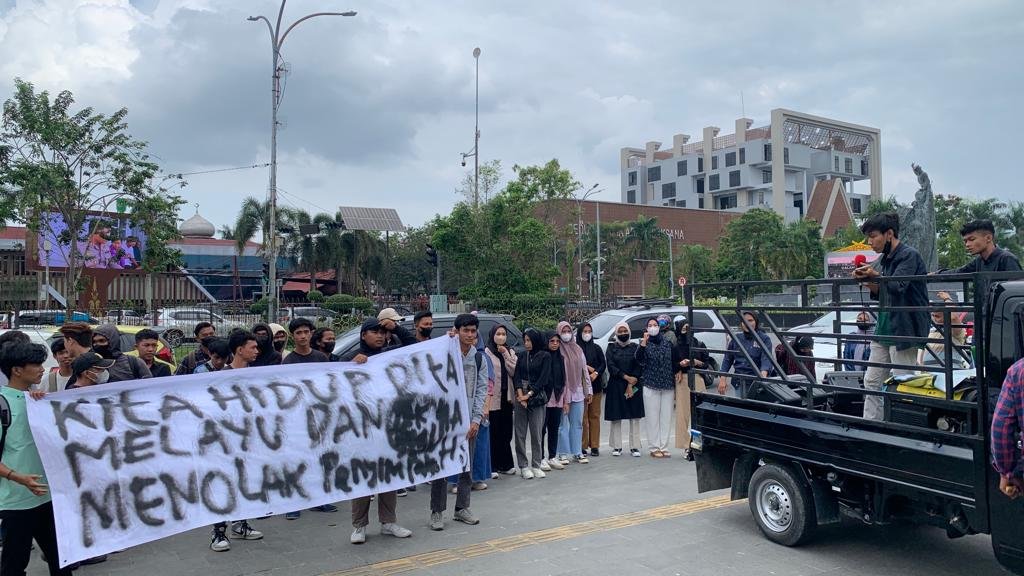 Kordinator Lapangan Persatuan Mahasiswa Pekanbaru Riau menyampaikan ya kami benar melakukan aksi di kejati Riau,