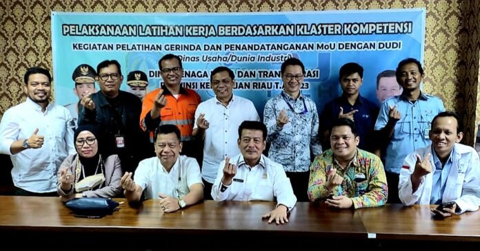 Acara juga disejalankan dengan penandatanganan MoU tentang pelatihan pengembangan SDM, instruktur, penempatan dan sertifikasi tenaga kerja antara Dunia Industri/Dunia Usaha dengan Kepala Dinas Tenaga Kerja Provinsi Kepri Mangara Simarmata.