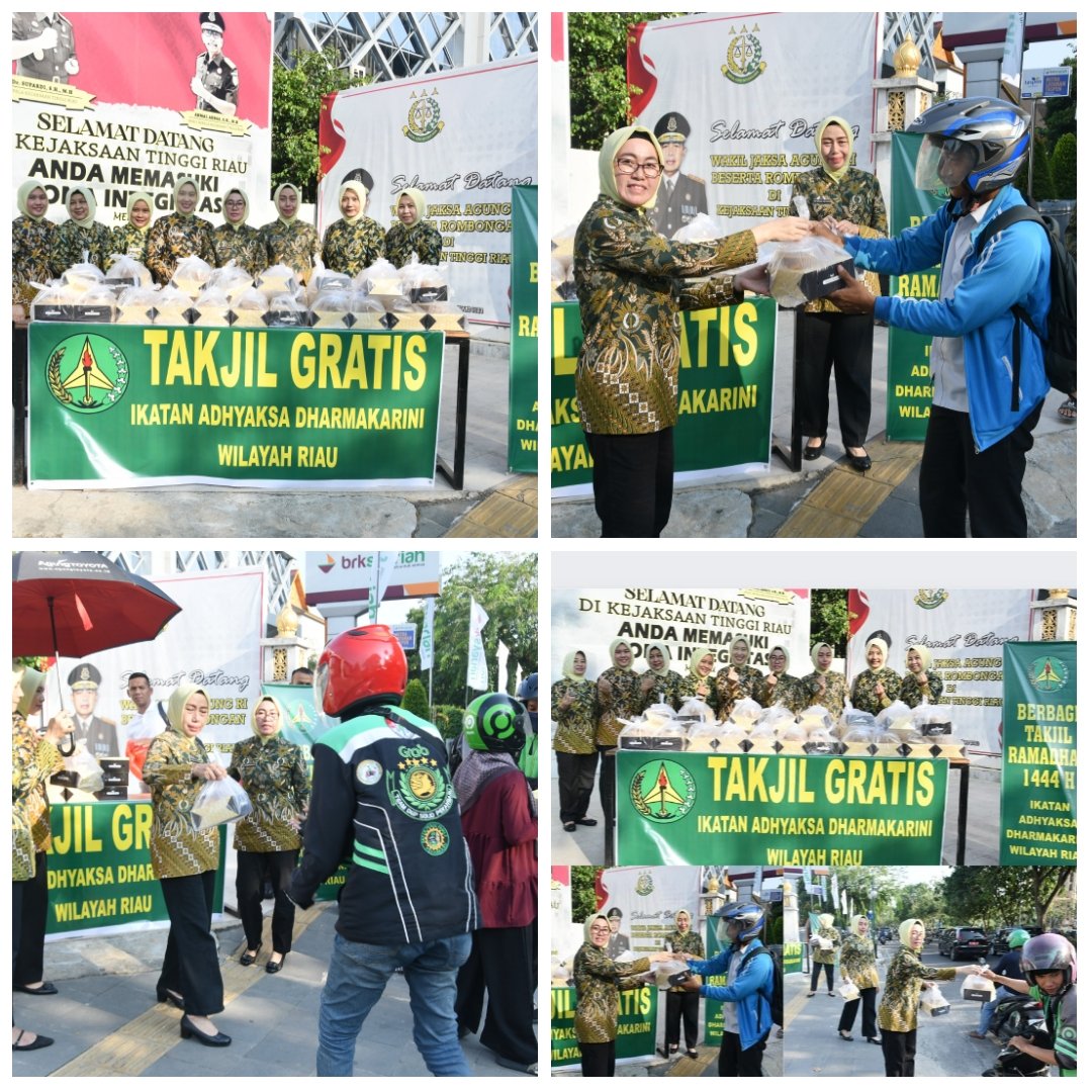 Menurut dia, adapun takjil yang dibagikan pihaknya itu berupa makanan dan minuman untuk berbuka puasa bagi pengendara motor yang melintas di depan kantor Kejaksaan Tinggi Riau, tepatnya diJalan Jendral Sudirman, Kota Pekanbaru, Provinsi Riau.