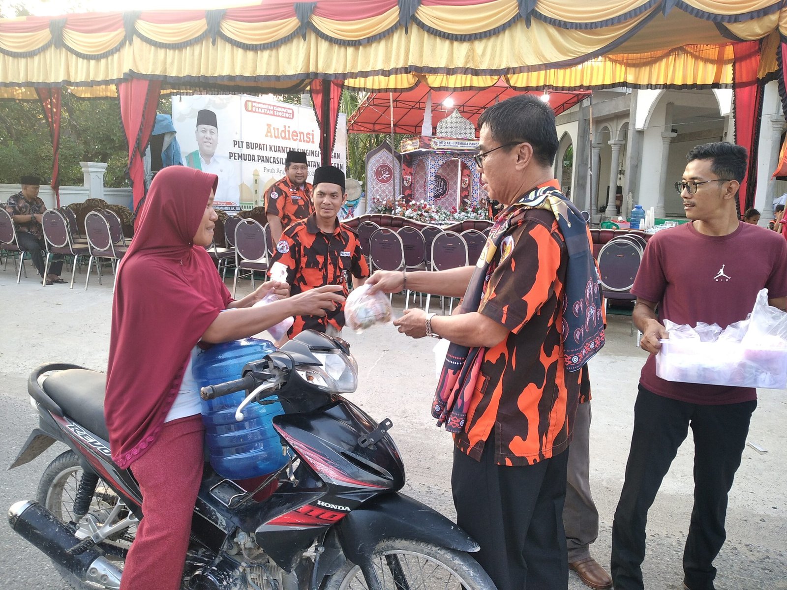 Kuansing (NadaRiau.com)- Majelis Pimypinan Cabang (MPC) Pemuda Pancasila (PP) kabupaten Kuantan Singingi (Kuansing) bersama seluruh pengurus dan anggota MPC PP Kuansing bagikan takjil kepada pengendara yang melintas di depan masjid Nur Hidaya, Desa Pauh Angik, Kecamatan Pangean, Selasa (11/04/2023).