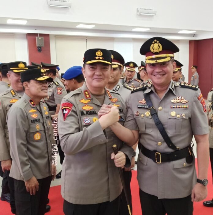 Kombes Pol Nandang Mu’min Wijaya resmi menjabat Kabid Humas usai dilantik oleh Kapolda Riau, Irjen Pol Mohammad Iqbal dalam upacara Serah Terima Jabatan yang digelar di Aula Tribrata Lantai 5 Gedung Mapolda Riau, Sabtu (15/04/2023) sore, sekitar pukul 16.00 Wib.