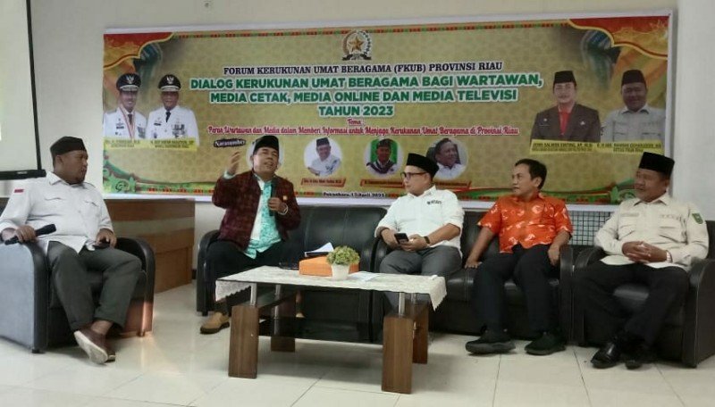 Pekanbaru (Nadariau.com) – Forum Kerukunan Umat Beragana (FKUB) Riau menggelar dialog bersama Pemerintah Provinsi (Pemprov), DPRD, Insan Pers dan Kabinda Riau di Gedung PWI Riau, Senin (17/4/2023).