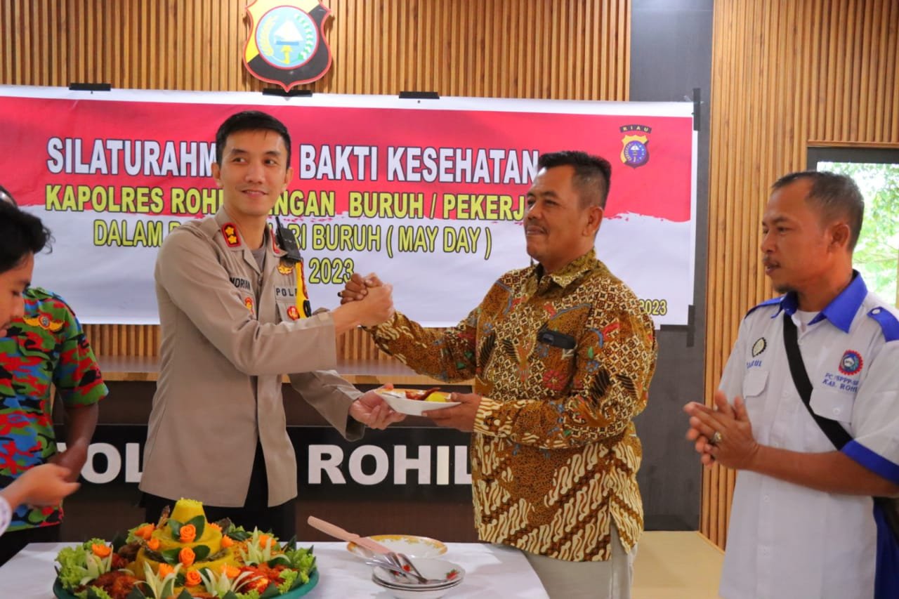 Rokan Hilir, Nadariau Com – Dalam Rangka memperingati Hari May Day Tahun 2023, atau dikenal hari buruh Nasional, Kapolres Rokan Hilir(Rohil) AKBP Andrian Pramudianto SH SIK MSi menggelar kegiatan Silahturahmi dan Bakti Kesehatan bersama Buruh Kerja di Aula Pratia Tama Polres Rohil, Senin 01 Mei 2023, Sekira Pukul 10.15 Wib.