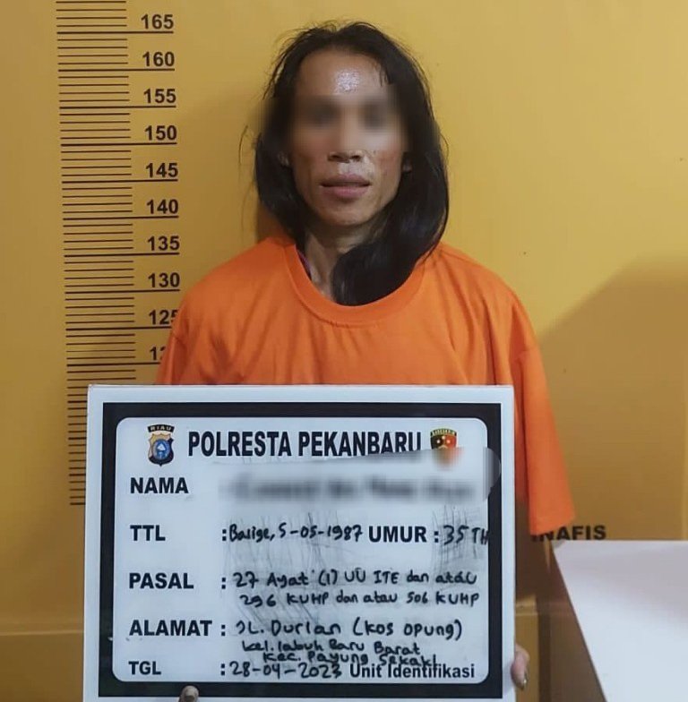 Kapolresta Pekanbaru, Kombes Pol Jefri Ronald Parulian Siagian saat dikonfirmasi wartawan melalui Kasat Reskrim, Kompol Andrie Setiawan mengatakan, pelaku berhasil diamankan petugas saat berada di kamar 225 Hotel Winstar yang berada di Jalan Mohamad Ali, Kelurahan Padang Terubuk, Kecamatan Senapelan, Kota Pekanbaru.