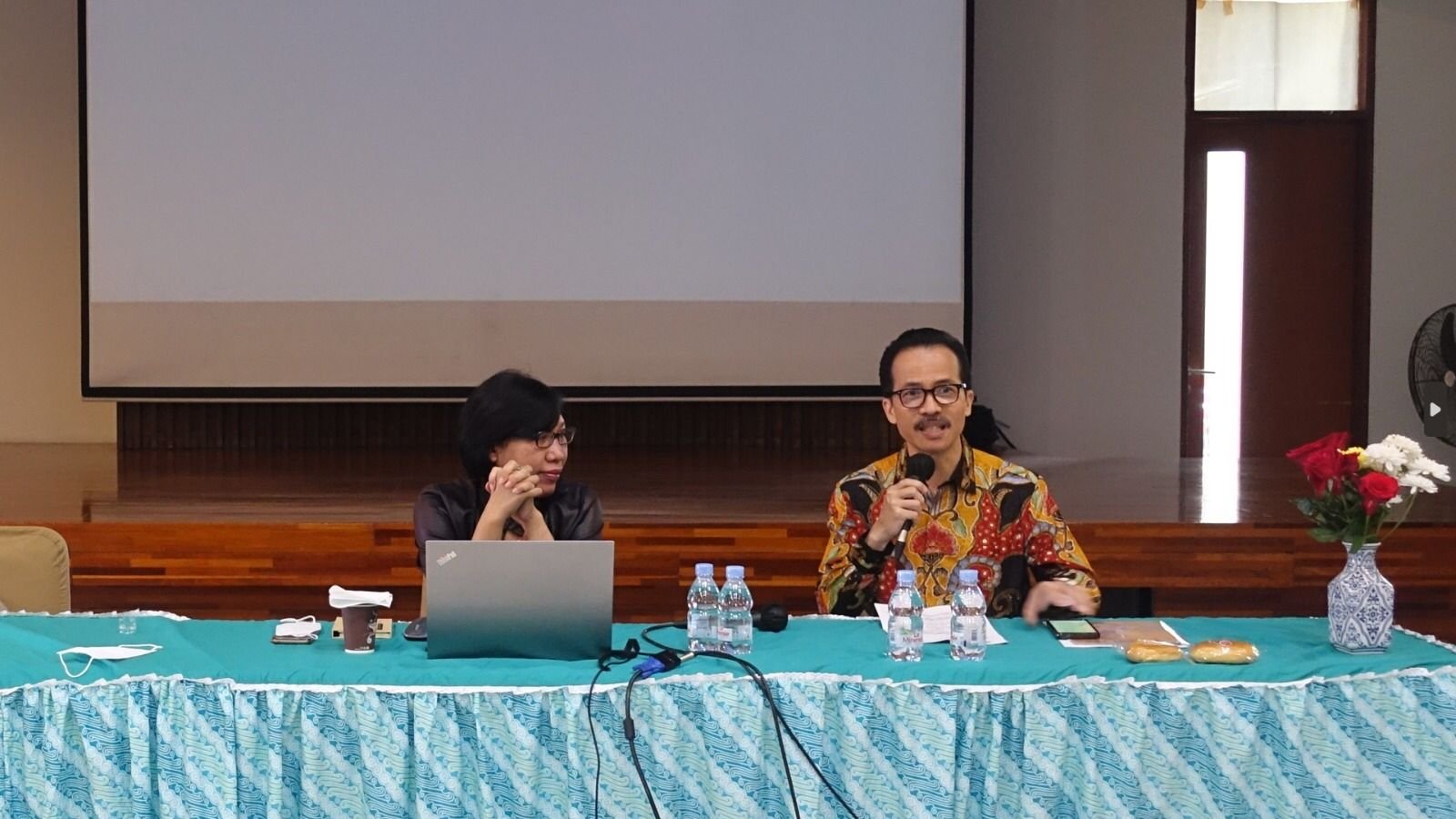 Dua orang pembicara yang dihadirkan dalam seminar kali ini yakni, tokoh Gereja Katholik, Romo Thomas Ulun Ismoyo, dan Anggota Komisioner Komnas Perempuan Theresia Sri Endras Iswarini.