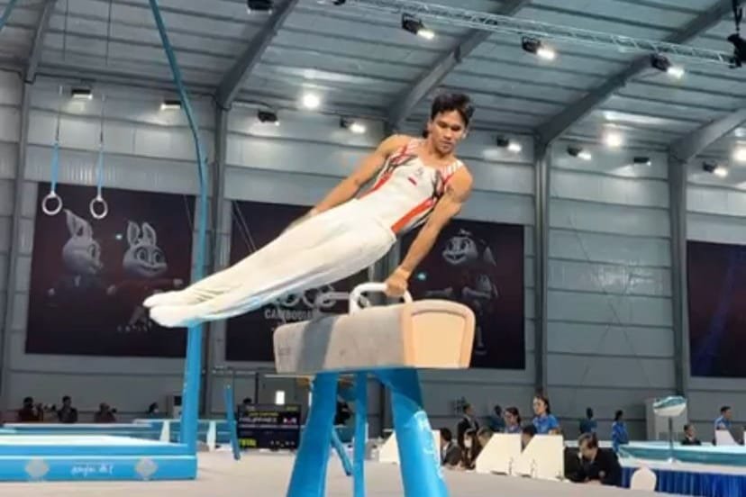 Pekanbaru (Nadariau.com) – Target pesenam Riau, Abiyu Rafi, untuk menyumbang media bagi kontingen Indonesia pada iven olahraga SEA Games XXXII, akhirnya terwujud. Abiyu yang turun di nomor Palang Tunggal berhasil meraih media perak. ia kalah tipis dari pesenam Vietnam yang berhasil meraih medali emas.