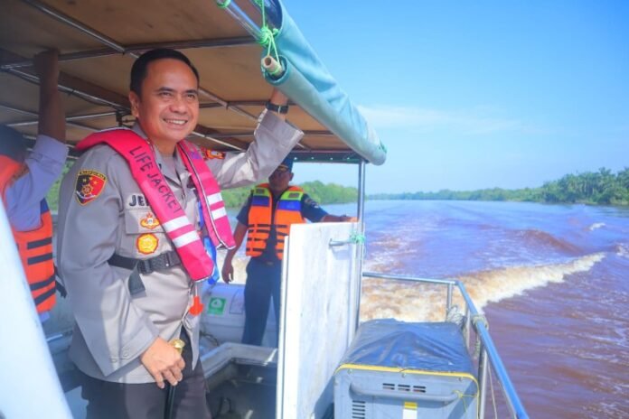 Pekanbaru (Nadariau.com) – Kapolresta Pekanbaru, Kombes Jefri RP Siagian melaksanakan patroli kapal dari Pelabuhan Sungai Duku ke Perbatasan Kota Pekanbaru dengan Kabupaten Siak, Selasa (16/05/2023) pagi, sekitar pukul 08.00 Wib.