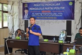 Dalam kesempatan itu, Agung yang digadang-gadang sebagai Calon Walikota Pekanbaru tahun 2024 dengan tagline Spirit Baru Pekanbaru ini manyampaikan materi tentang “Mengelola Partai Politik” di hadapan puluhan mahasiswa Fisipol Unri.