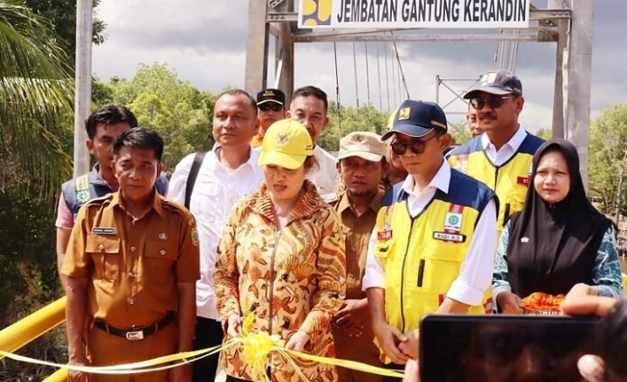 KEPRI, Nadariau.com – Anggota DPR RI Komisi V Fraksi Golkar Dapil Kepri meresmikan proyek pembangunan jembatan gantung Kerandin-Pekaka penghubung delapan desa, di Kabupaten Lingga.