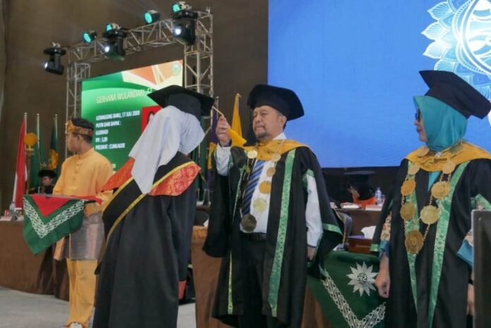 Pekanbaru (Nadariau.com) – Wisuda ke – 24 Sarjana dan Diploma III (DIII) Universitas Muhammadiyah Riau (UMRI) tahun 2023 bertemakan ‘Mencerdaskan Bangsa dan Mencerahkan Semesta’. Kegiatan wisuda ini dilaksanakan di gedung SKA Co Ex Pekanbaru, Rabu (17/5/2023).